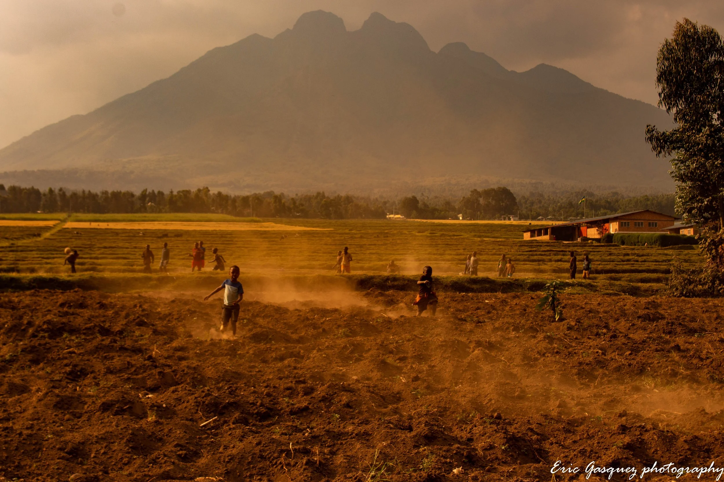 Devant le majestueux Sabyinyo de 3645 m (du Kinyarwanda iryinyo qui signifie “dent”) les enfants du village accourent dès qu’ils m’aperçoivent. La poussière qui se dégage rajoute soudain un espoir à la promesse de la terre.