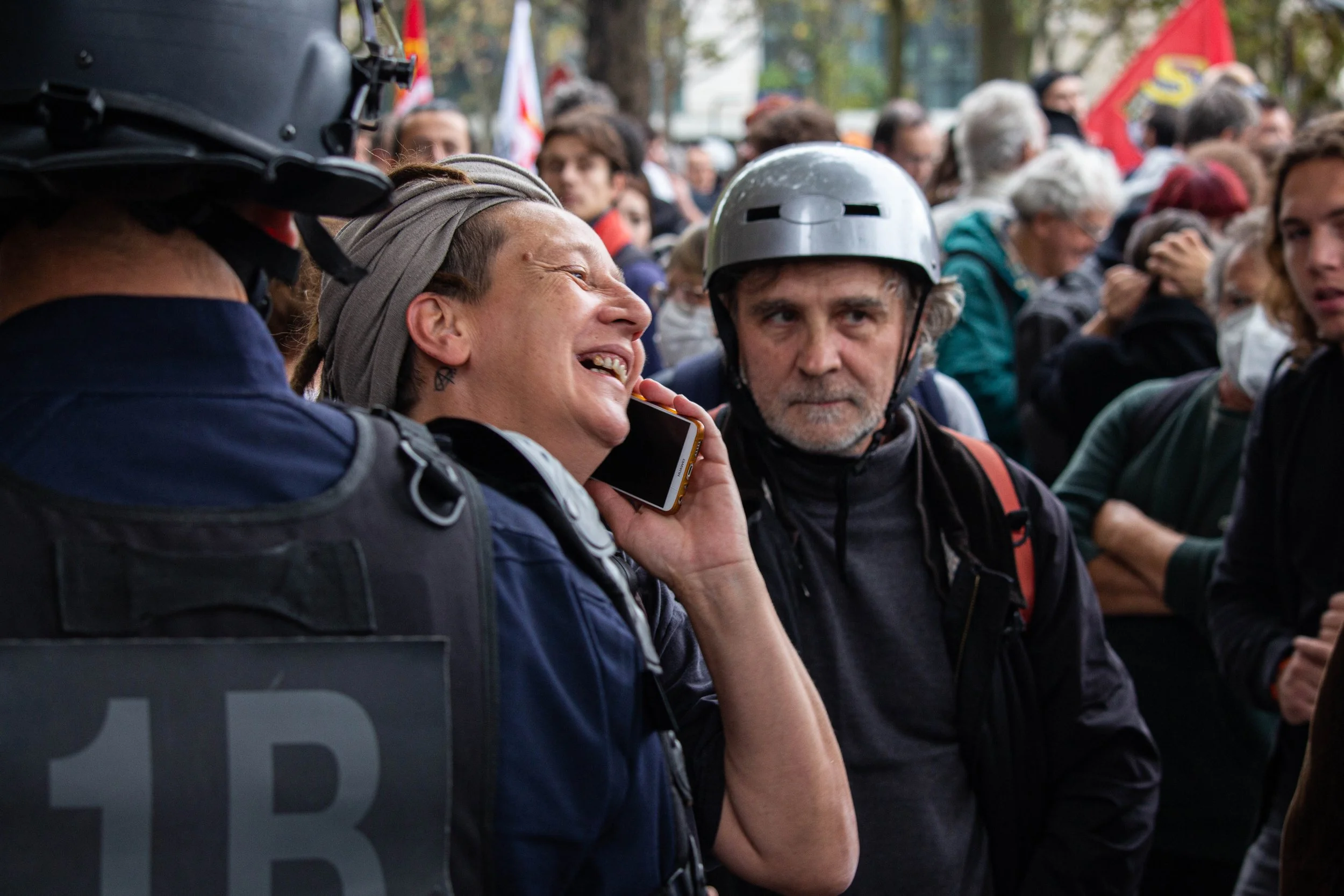 Les photos doivent refléter d’un côté le courage de nombreux militants qui croient en leurs idées mais aussi celui des forces de l’ordre dont le travail est parfois très difficile. Au milieu des exigences, quelques badauds, curieux, simples passants, des chiens et des chats pour qui rien ne change. C’est la beauté du mouvement.