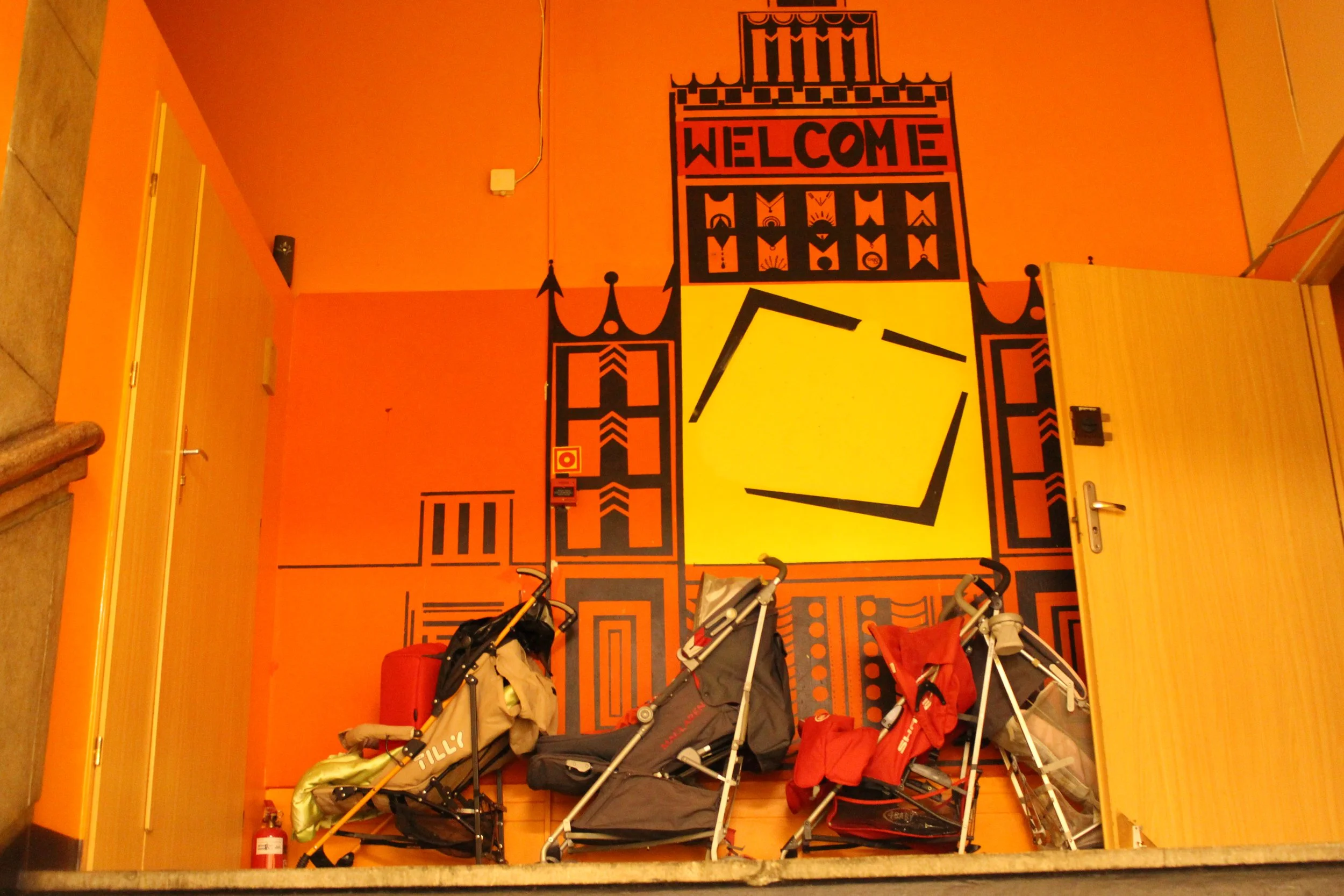 L’accueil chaleureux d’un hôtel de Varsovie. Des dizaines de femmes ukrainiennes y trouvent refuge. Ici, un garage à poussettes.