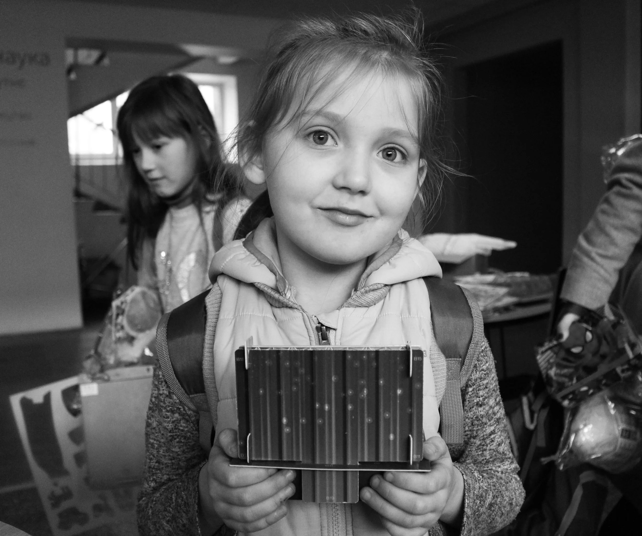 Oksana a perdu sa famille dans un bombardements à Donestk. Le bonheur qu’elle affichera toute cette journée contraste avec la réalité de sa vie. Elle ignore tout au moment de cette photo.