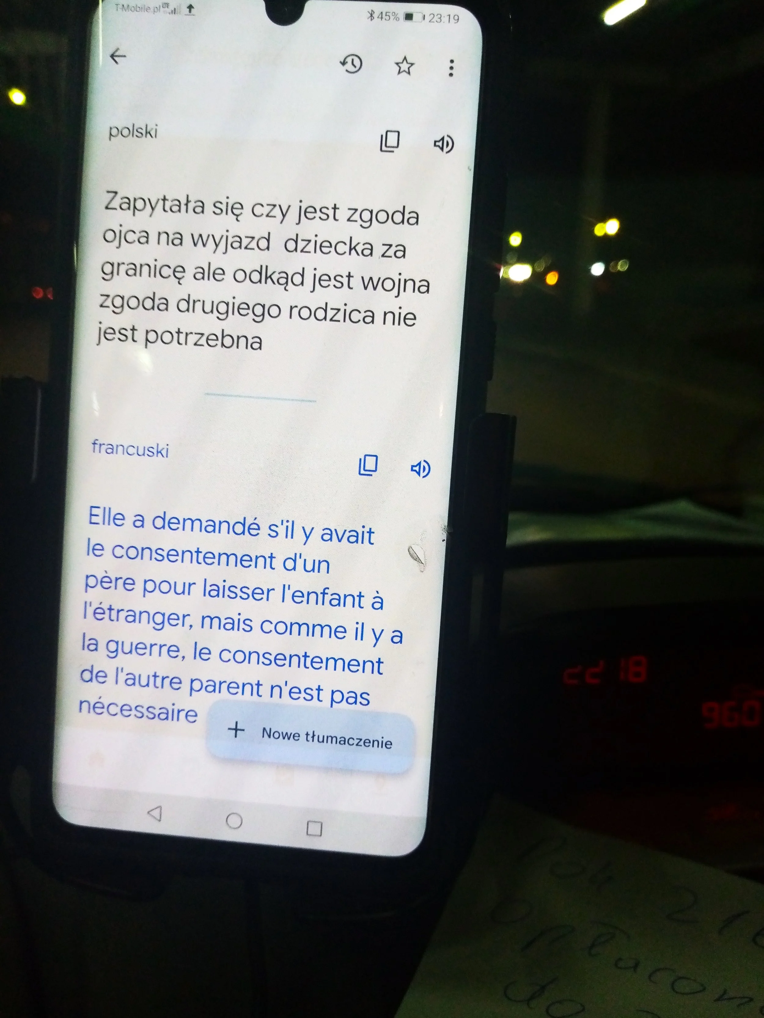Frontière Pologne-Ukraine. Une heure de pourparlers au poste frontière pour en venir à cette conclusion. La technologie à notre service pour communiquer avec ma passeuse.