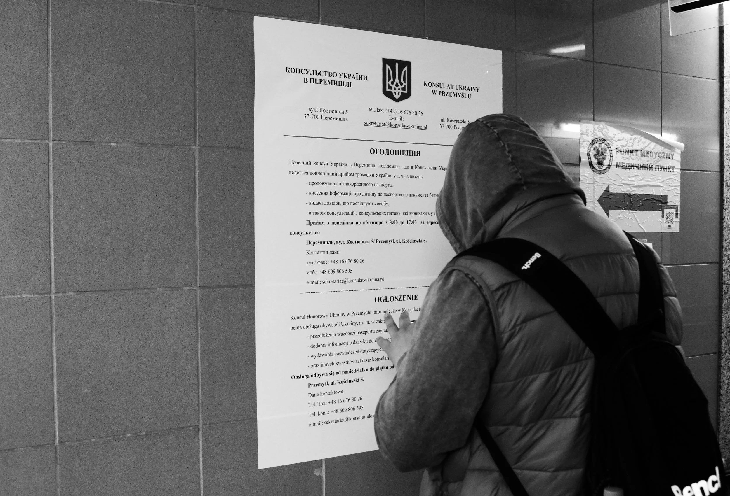 Les appels aux forces vives. Une loi oblige les hommes de 18 à 60 ans à s’engager dans le conflit. J’ai rencontré l’un d’eux à Varsovie, un étudiant, déserteur sans avoir jamais connu l’armée. Il a profité des 15 jours avant l’adoption du texte pour fuir. Autour d’une clope partagée devant un hôtel, « Je n’ai pas peur de mourir. J’ai simplement peur de devoir tuer. » me confiera-t-il.