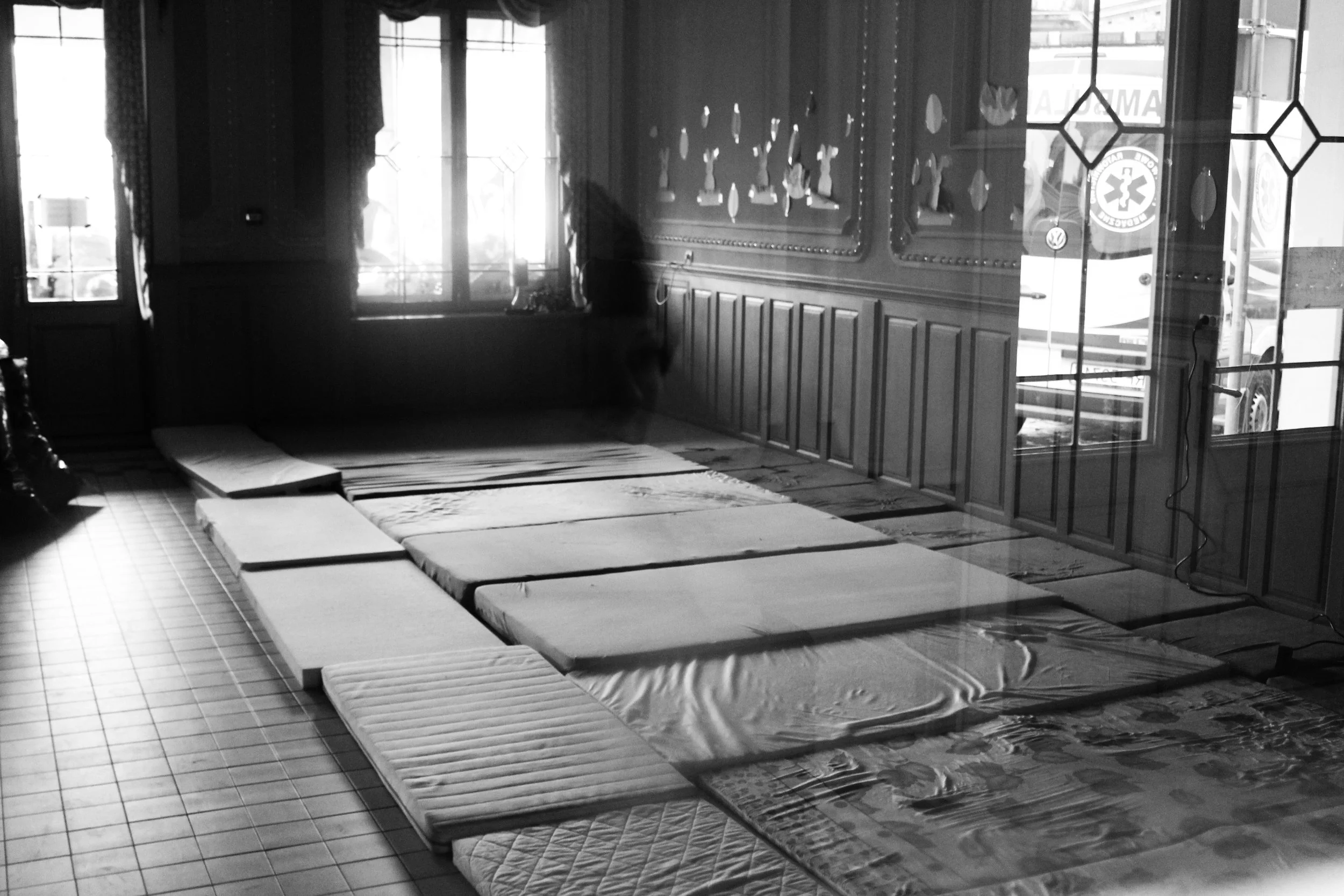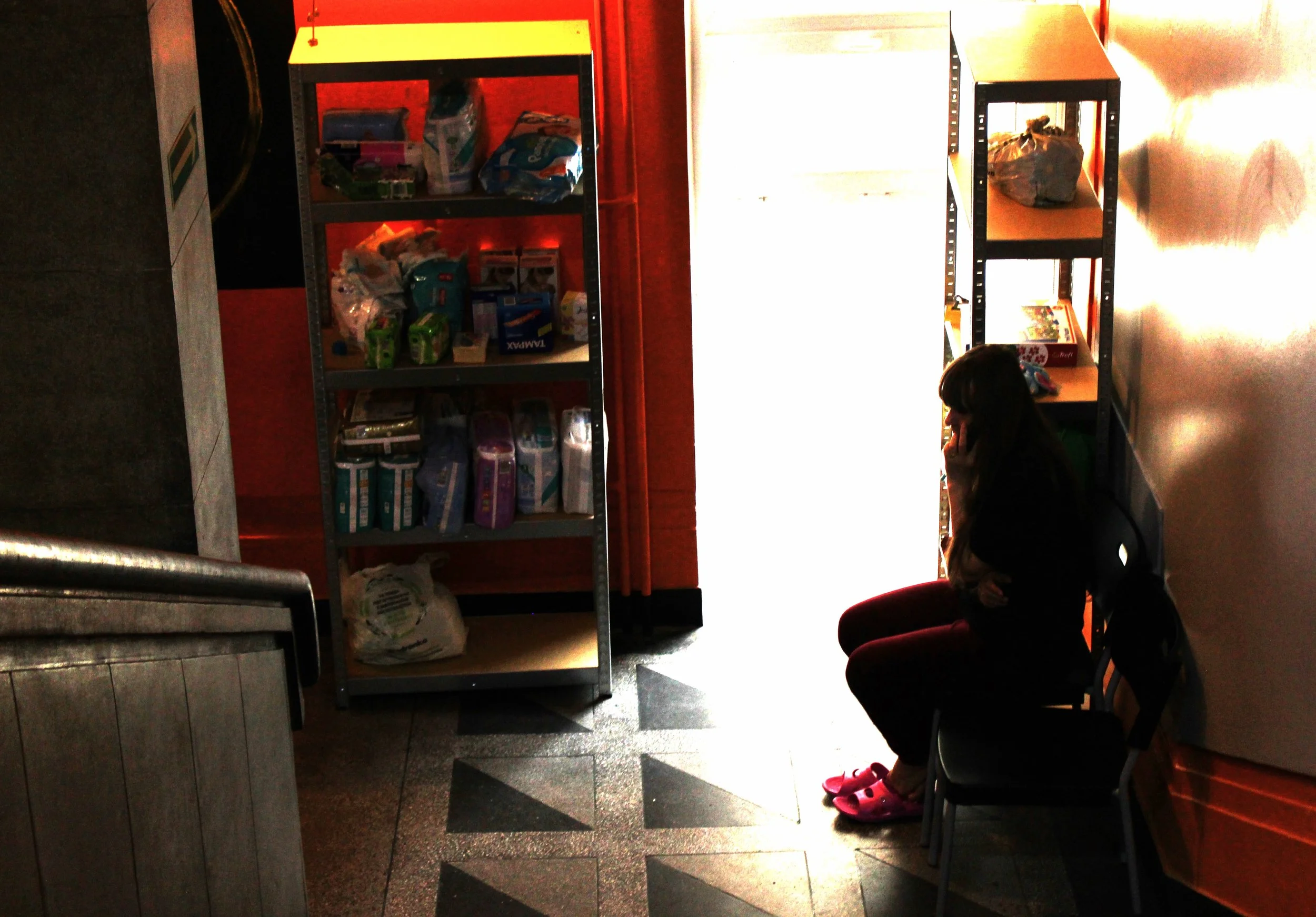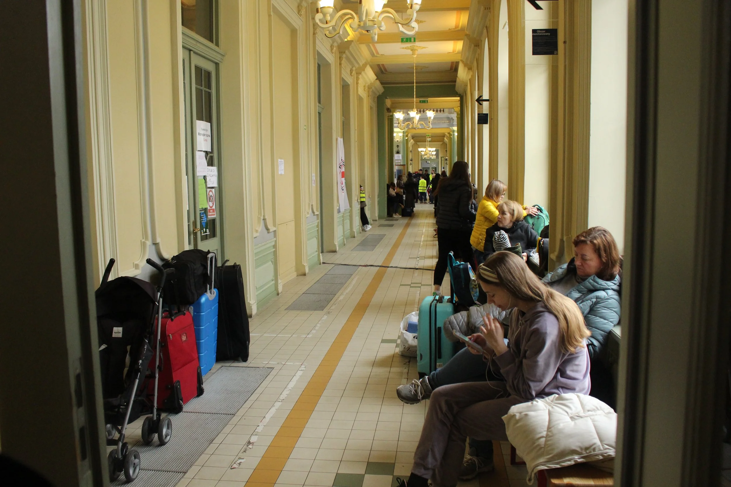 Dans l’attente de recevoir un lit, femmes et enfants patientent dans le couloir de la gare. Un temps dévolu à la recherche de nouvelles de leurs proches restés au pays. Neuf réfugiés sur 10 est une femme ou un enfant.