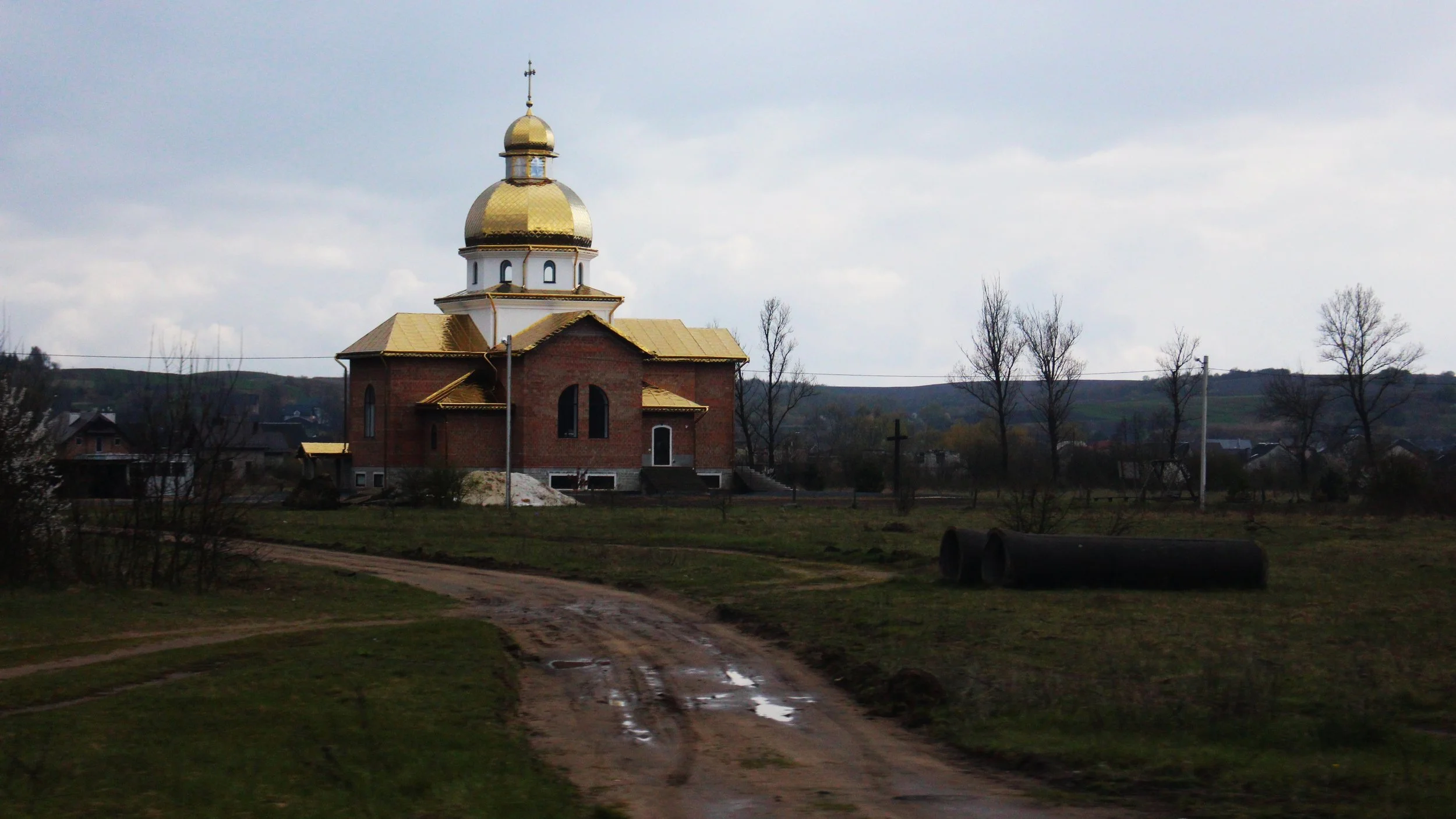 Une église orthodoxe ukrainienne dont l’éclat doré du dôme contraste étrangement avec la simplicité du village. L’Ukraine est un pays très pauvre.